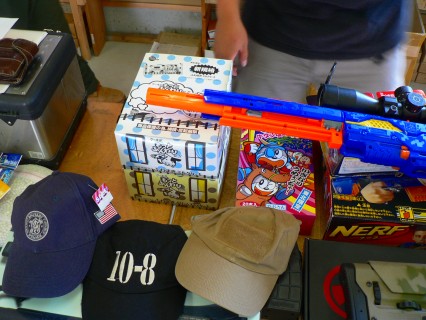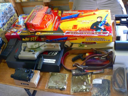 お昼前位にSEIさん登場。御本人の写真撮ってなかったのでSEIさんの重要コスプレアイテムと参加者の銃とで夢のコラボ。