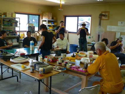 その頃工場内ではエントリー表に御記名をお願いしてる所。朝ごはんは北海道直送のとうもろこしを頂きました。何から何まですいませんm(__)m