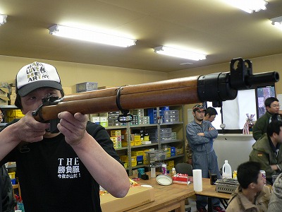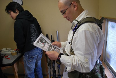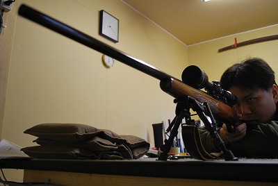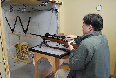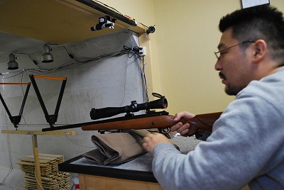 射場は最終調整に余念の無い人たちが。一名がまだ出場銃を決めかねている状態。