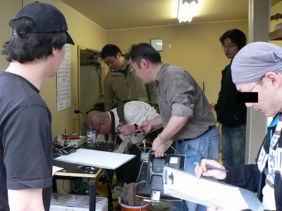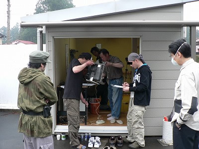 スタッフ参加の方々にやり方説明したり、カメラのセッティングやモニターの設置を進めます。