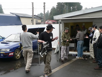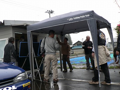 さて、今回6回目にして初の雨模様というコンディションの中、前日の会場セッティングを煮詰めます。