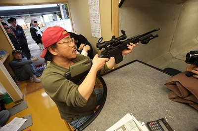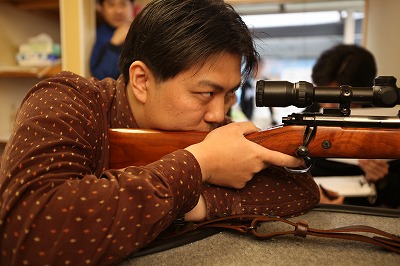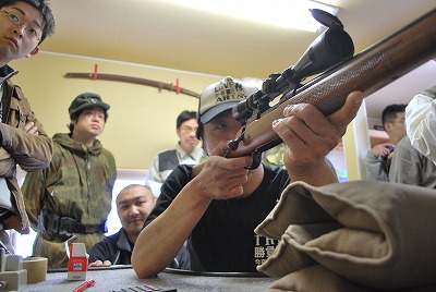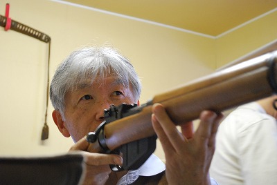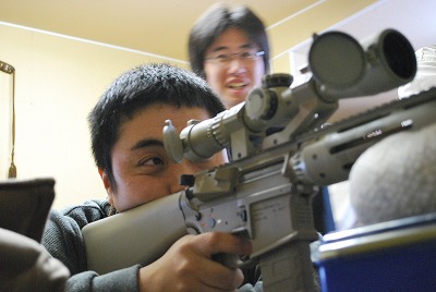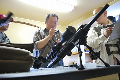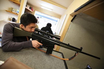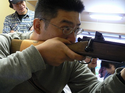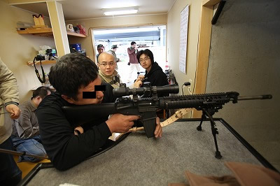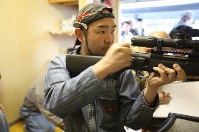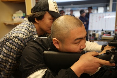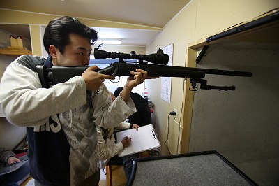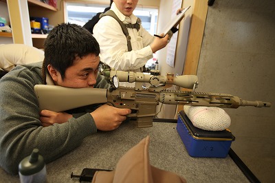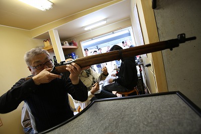 九六式軽機のモデルさん。刺青Tシャツは寒いので中止