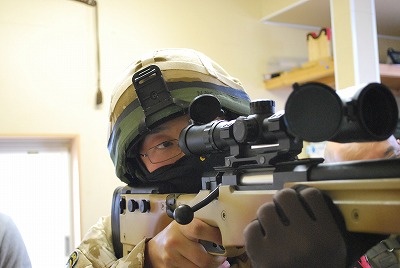 ドイツのスナイパー風コスプレで。荒いシボ加工の見たことの無いスコープでした。