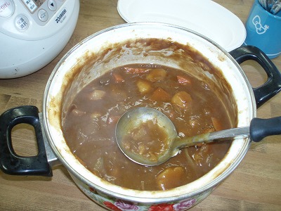 お昼ごはんにカレーを作っていただきました。鹿肉カレーもあったそうですが、お目にかかる前に肉はすべて無くなってましたよ。(^^;;;