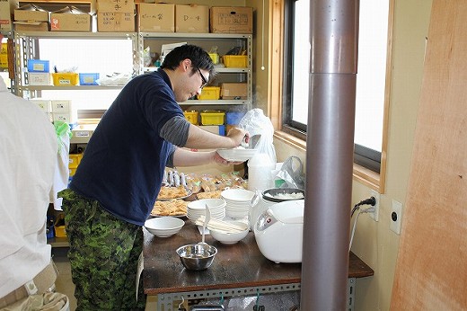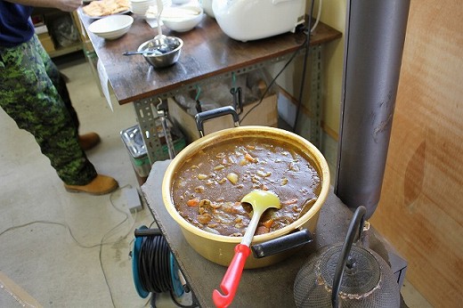 お昼も近いので、たかポンが用意してくれたカレーの配給が始まります。
