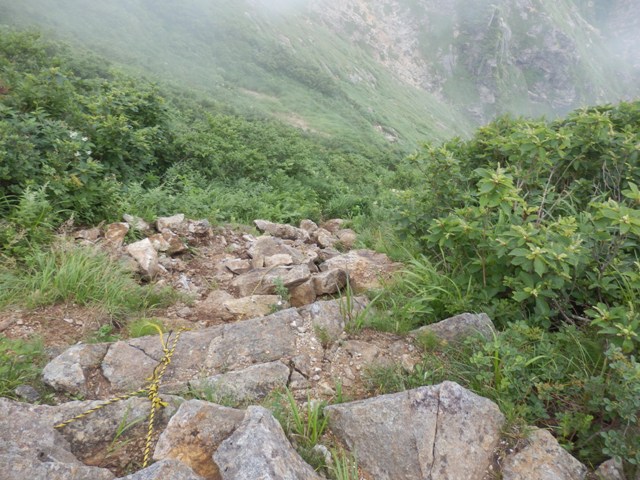 剣ヶ峰から三国岳(三国小屋は山頂にある)に登る途中にある。晴天が続く