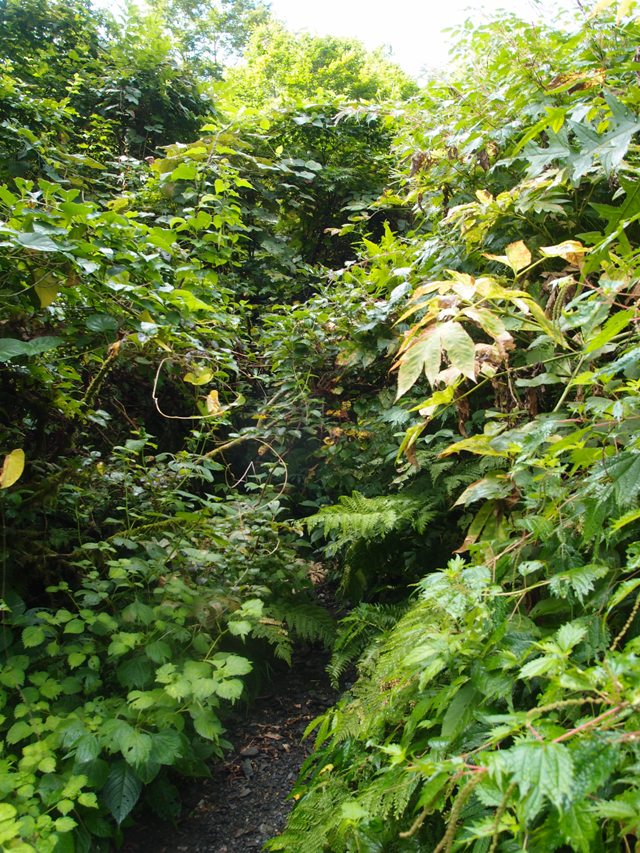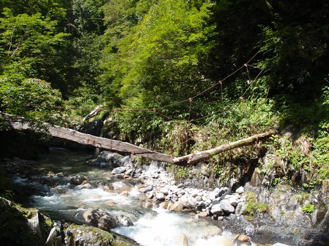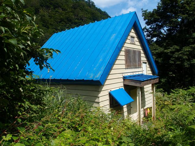 されていないので草で覆われていた。なお小屋手前の吊橋が破損しているの