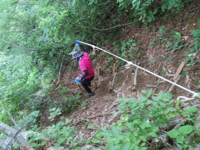 分岐から急な斜面を下る