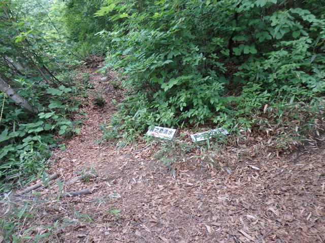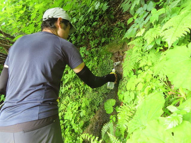 大日杉小屋の初代管理人である山田長之助氏が見つけた清水。登山道から僅かで良い水が湧き出ている。 |