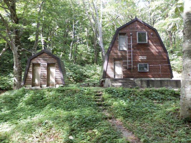 ブナ林の中にひっそりと建つ湯ノ島小屋